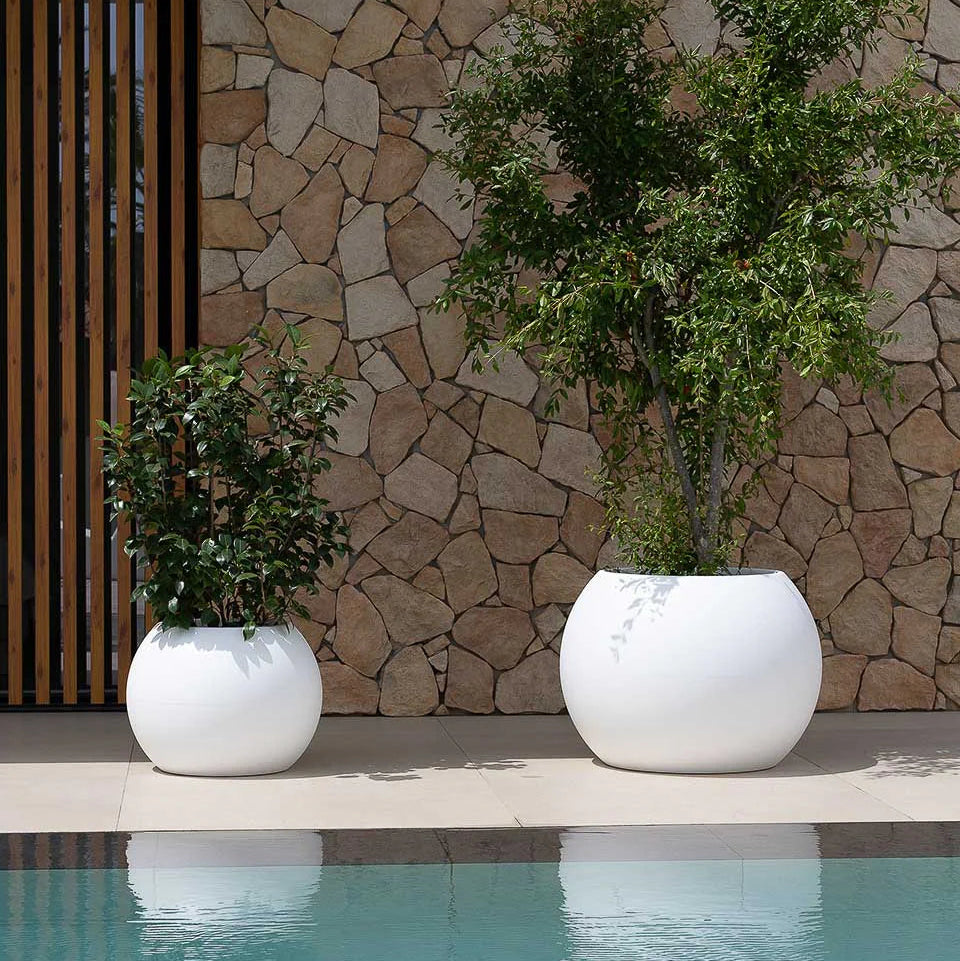 A Floreira Dalia apresenta forma redonda, dotada de um design de linhas curvas e acabamento suave.